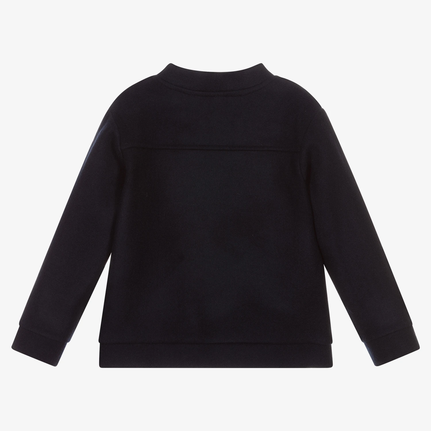 Navy blue zip-up jacket for boys by Sarah Louise. Made in a soft felted polycotton blend, it has hand pockets on the front.