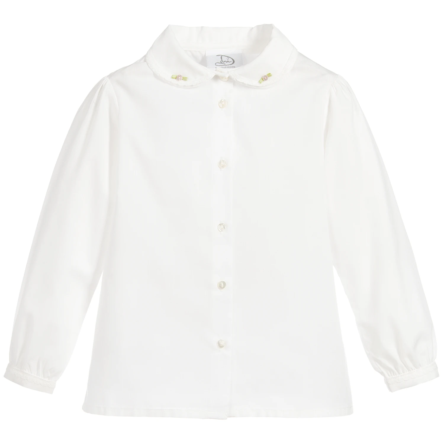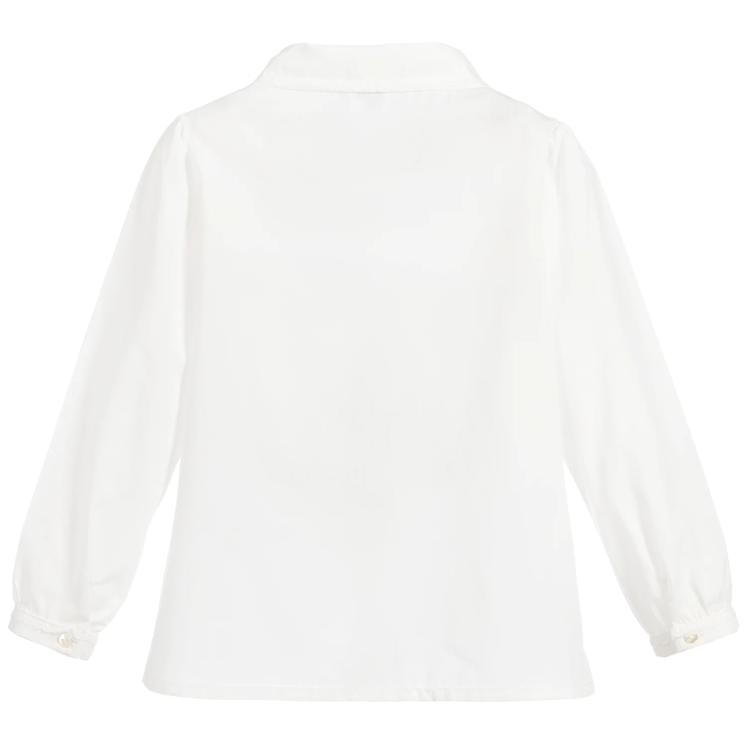 With pretty lace around the collar and cuffs, this ivory blouse by Sarah Louise is a lovely choice for a smart outfit. Made in a polycotton blend, it will resist creases so girls will stay looking neat all day.
