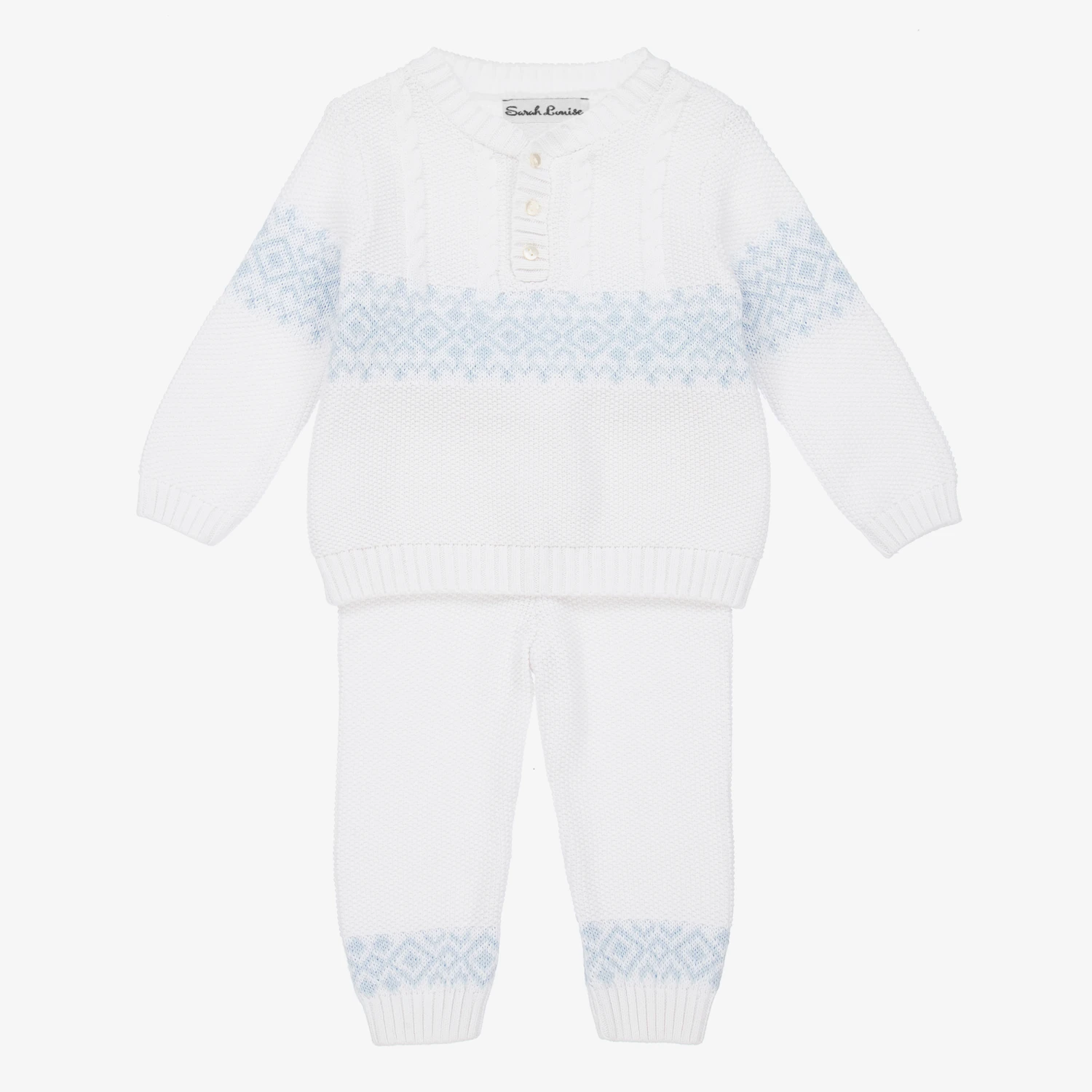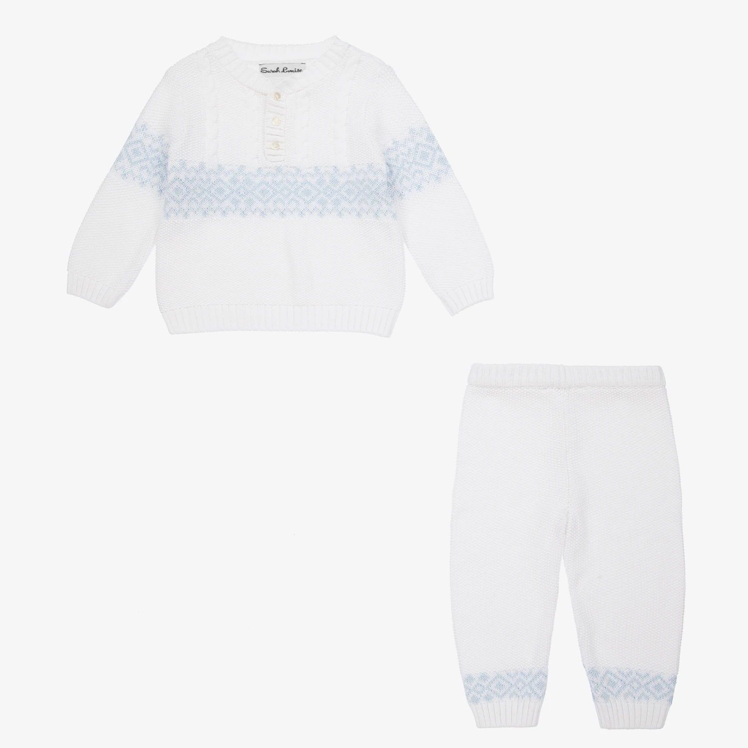 Sarah Louise White Cotton Knit Trouser Set